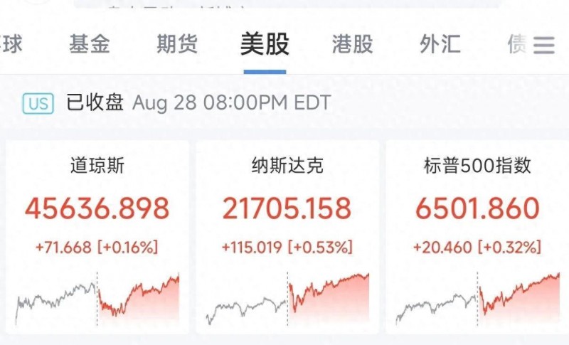 更让人惊讶的是,A股上证指数已经迫临3888点,两个月内累计涨幅超过20%。这一切发生在8月28日。 那天晚上,美国股市全线飘红,道指上涨0.6%,标普500涨0.8%,双双改写前史纪录。