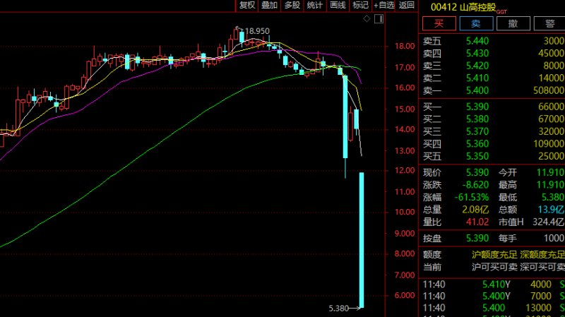 港股山高控股重挫