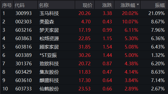 早盘,A股轻工制造板块部分个股体现较好,玉马科技、美盈森、*ST亚振涨停,梦天家居、松炀资源、顾家家居、致欧科技等涨幅居前,均超越4%。