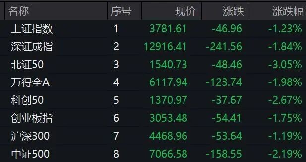 今天早盘,A股震荡调整,上证指数盘中跌破3800点,深证成指也一度击穿13000点,创业板指失守3100点,科创50也未能守住1400点。超4900只个股跌落,成交呈扩大趋势。