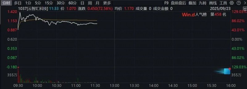 港股云智汇科技昨日早间暴涨134%后紧迫停牌,今天复牌持续大幅高开高走,盘中一度飙升逾129%,两个买卖日最高算计大涨逾435%。