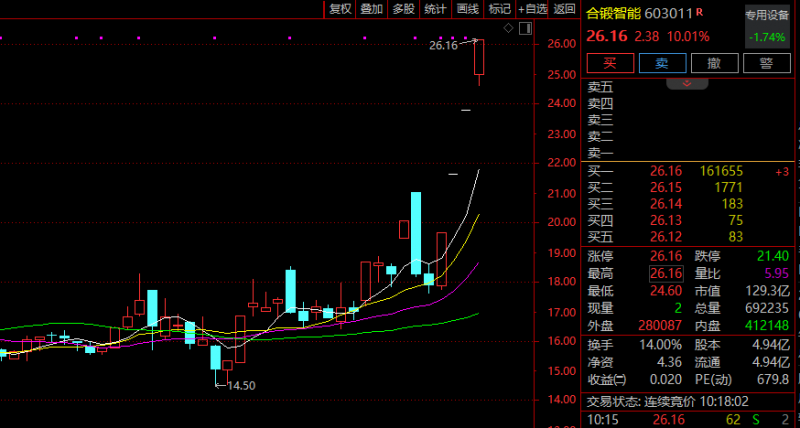 个股方面,金山软件A股、H股大涨,上纬新材(688585)复牌“20cm”跌停,合锻智能(603011)10天6板。