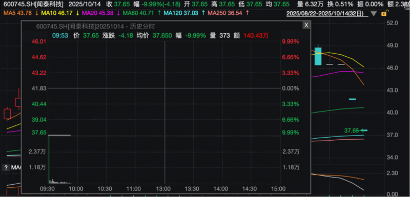 受此音讯影响,闻泰科技股价10月13日一字跌停,今日开盘再次一字跌停。