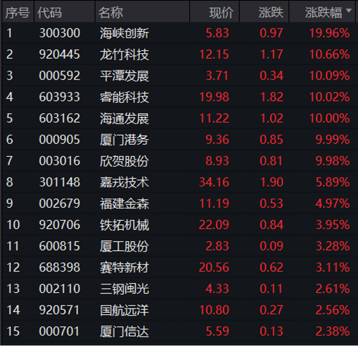 福建本地股多股大涨