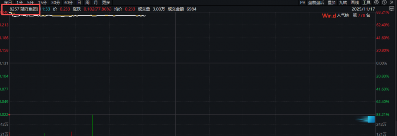 港股商场大幅波动的个股中,靖洋集团大涨,盘中涨幅一度超越80%。